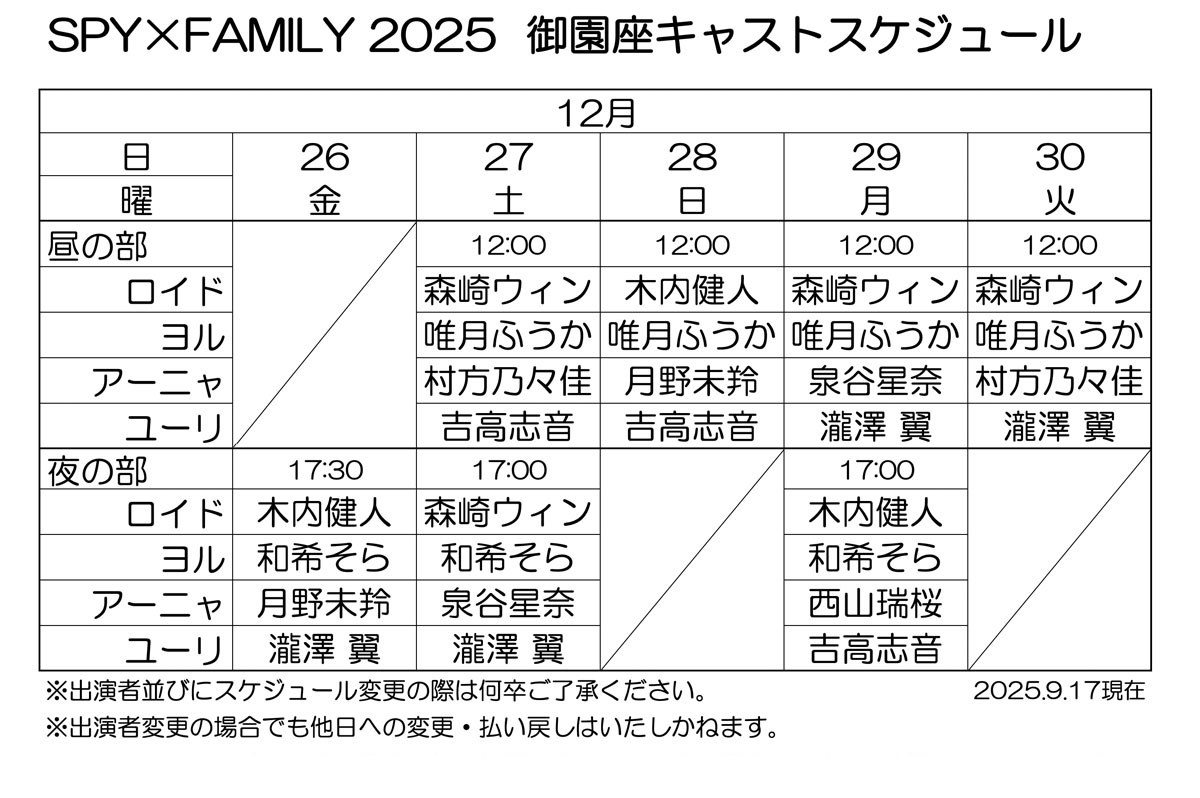 原作は、遠藤達哉が2019年3月より「少年ジャンプ+」(集英社)で連載中のスパイアクション&ホームコメディ「SPY×FAMILY」。大好評を博した2023年の初演に続き、早くも2025年の再演が決定!!