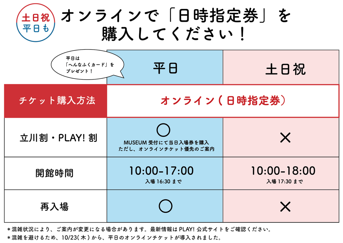 チケットの詳細及び注意事項はPLAY!公式サイトを必ずご確認ください。予告なく変更になる場合がありますので、チケット購入前と来場の直前に、お客様ご自身で必ず公式サイトをご確認ください。