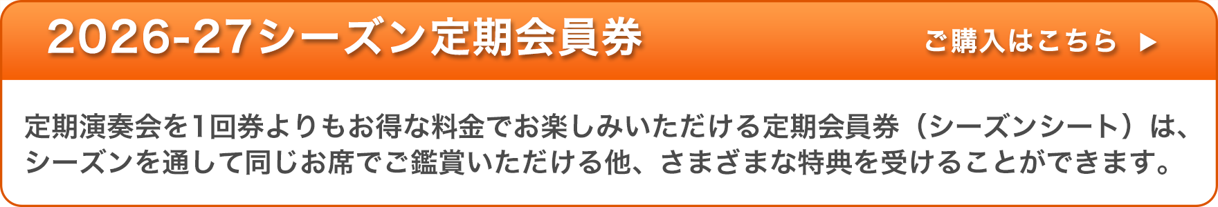 響きの森クラシック・シリーズ Vol. 86 チケット価格(税込): ※ S席のお取扱いはございません。 ※チケットのお受取方法は「郵送」のみとなります。 |